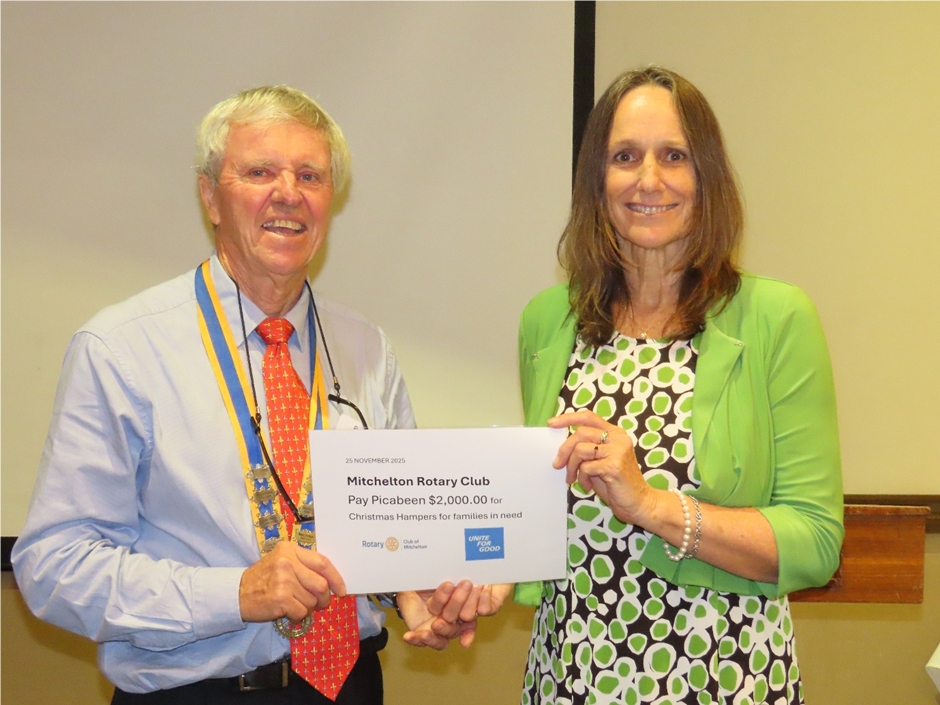 Mitchelton Rotary Club has used the proceeds of our annual Christmas Raffle to donate $2,000 to Picabeen for Christmas Hampers for families in need.